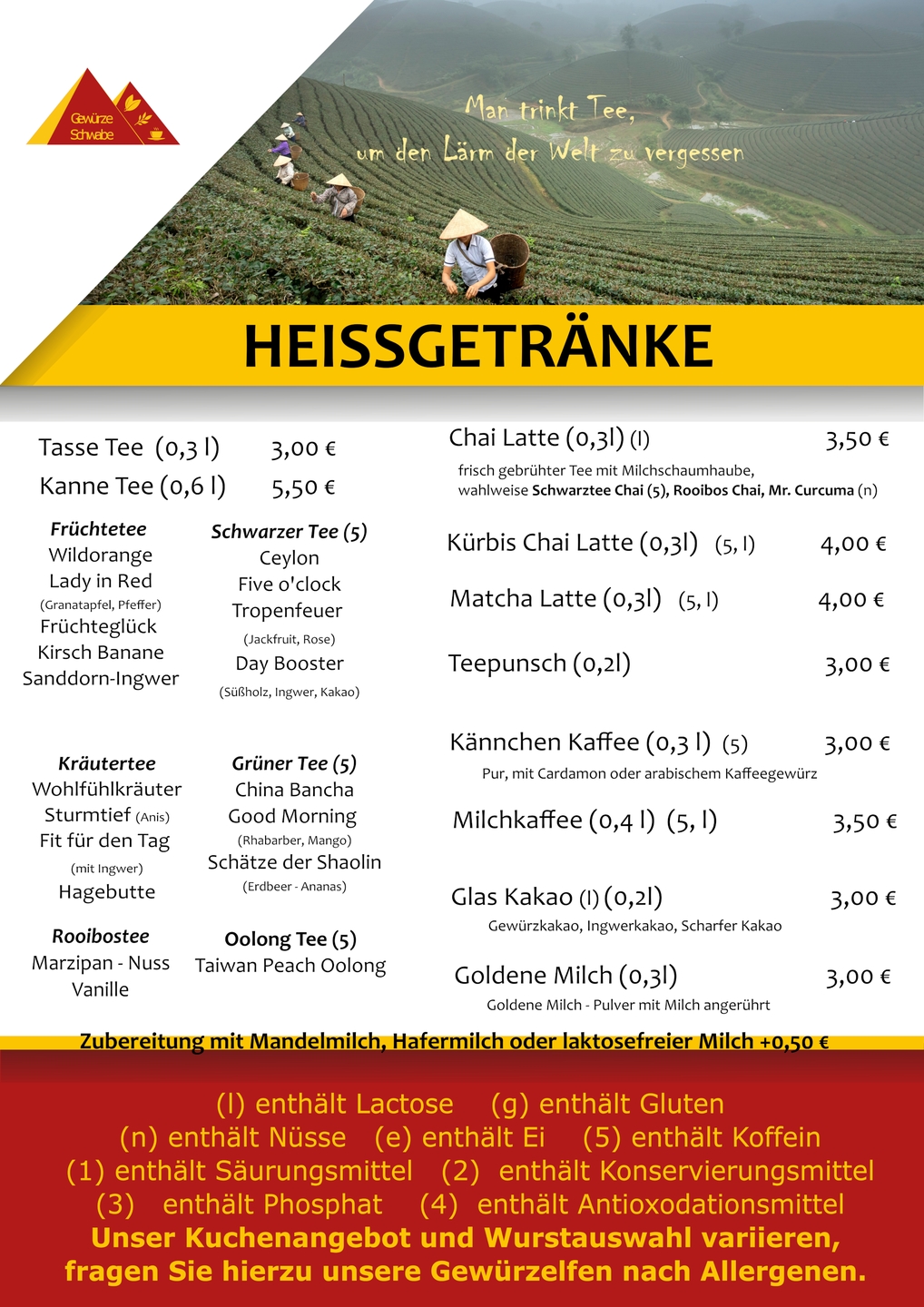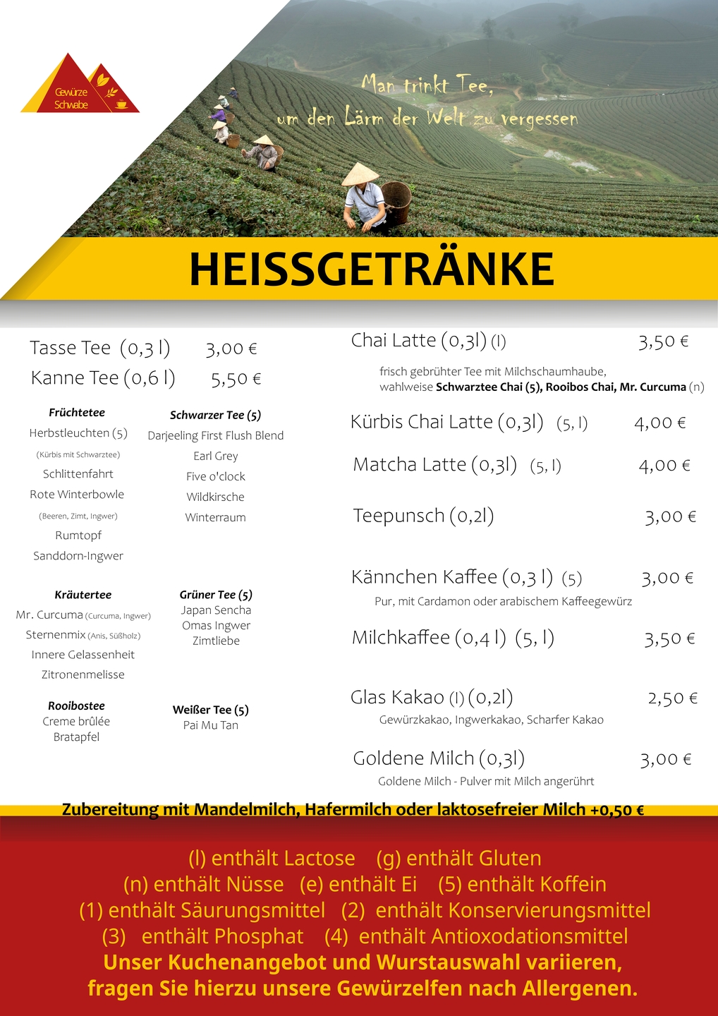Für die kalte Jahreszeit stehen Teepunsch und Goldene Milch zur Wahl.